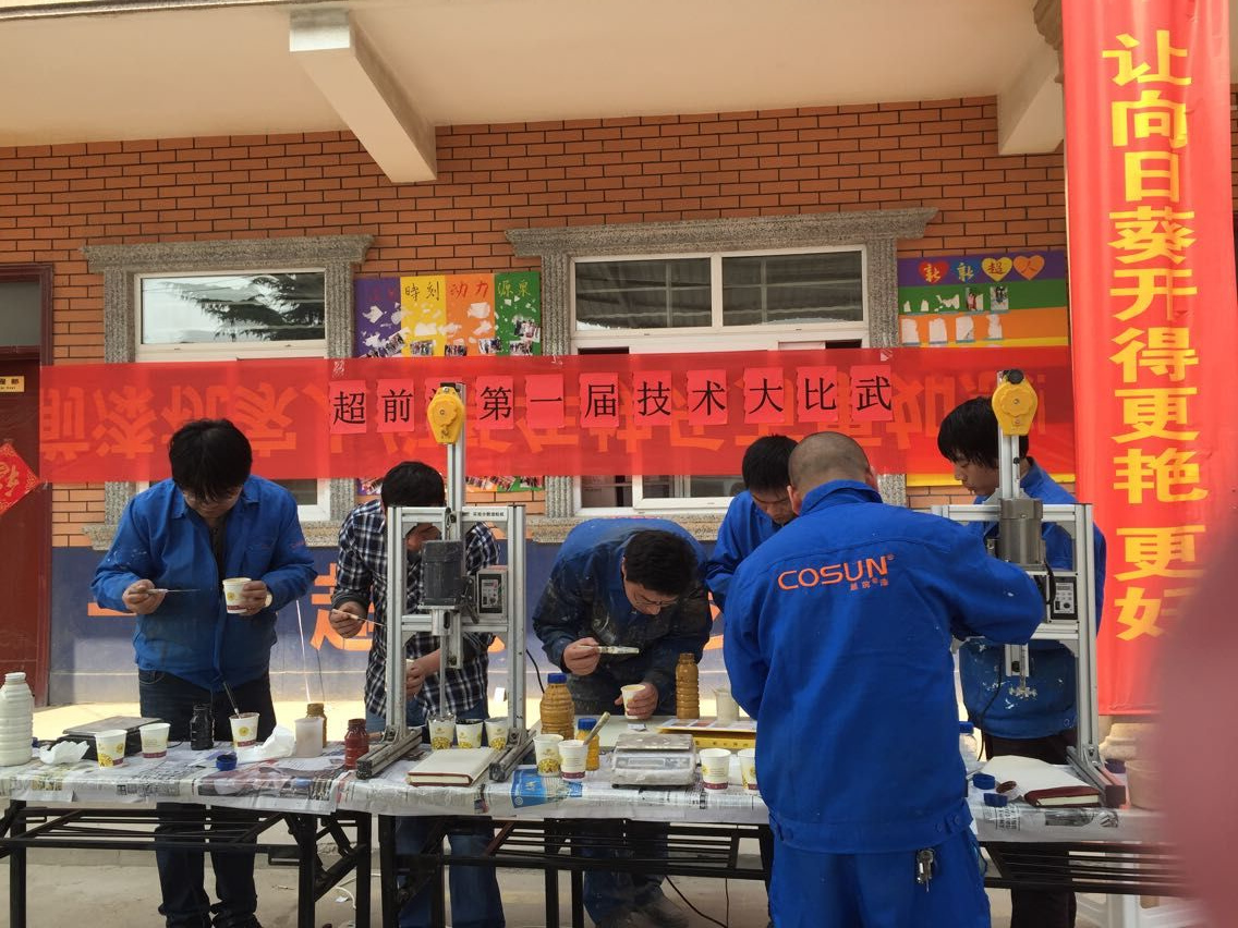 從一點開始一直到三點半才結(jié)束,幾位超前的超人們也都調(diào)配出自己滿意的外墻多彩漆樣板,交出滿意的答卷。以后,超前涂料會經(jīng)常舉行這樣的比賽活動,調(diào)動超人們的學(xué)習(xí)精神,給客戶提供更好的服務(wù),也請各位客戶多多關(guān)注我們超前http://m.globalfckj.com